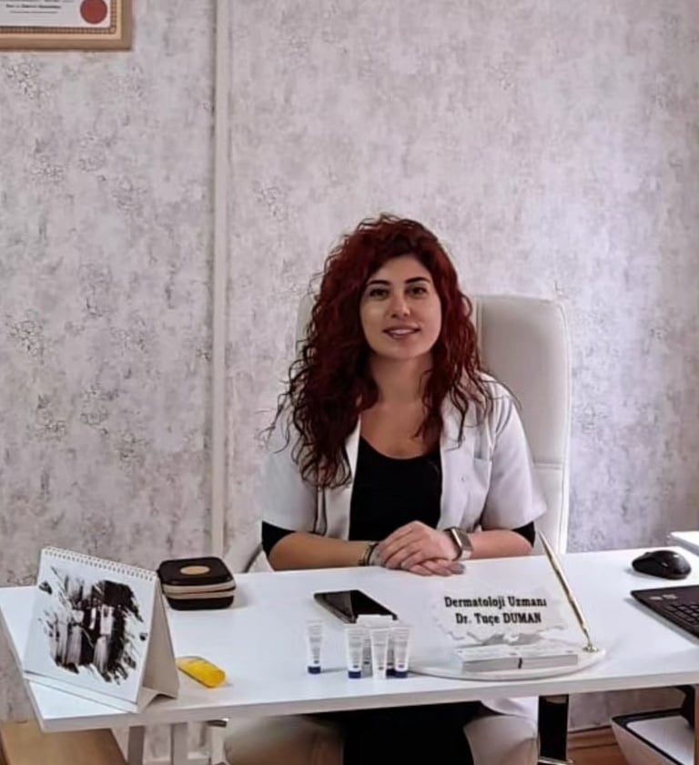 Dr. Zarif Tuçe Özkara Duman was born in 1989. She began her primary and secondary education in Ankara and completed it in Diyarbakır, then graduated from T.C. Ziraat Bankası Balıkesir Science High School in 2007. She received her medical degree from Ankara University Faculty of Medicine between 2007 and 2014. Between November and December 2014, she completed her compulsory service in Çerkeş, Çankırı. After ranking 41st in the April 2015 TUS (Medical Specialization Examination Turkey), she completed her residency in Dermatology and Venereology at Ankara Yıldırım Beyazıt University Faculty of Medicine between 2015 and 2021.